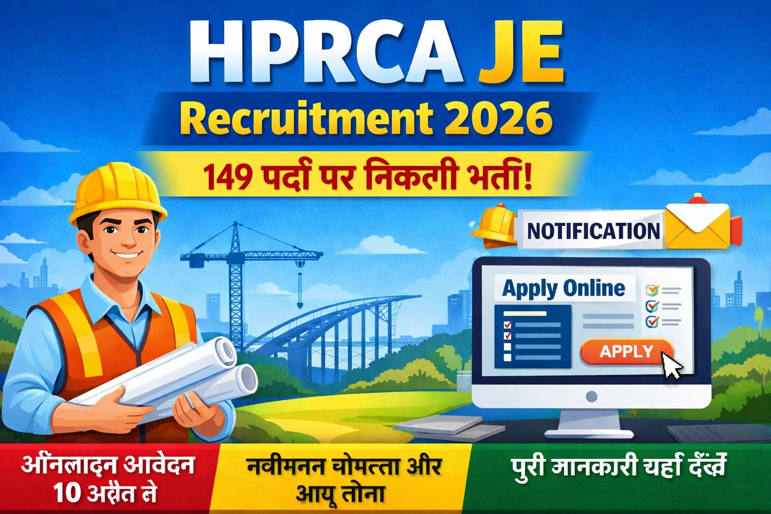 HPRCA Recruitment 2026: हिमाचल प्रदेश में सरकारी नौकरी की तलाश कर रहे युवाओं के लिए अच्छी खबर है। जूनियर इंजीनियर (सिविल) जॉब ट्रेनी पदों पर कुल 149 रिक्तियां निकाली गई हैं। इच्छुक और योग्य उम्मीदवार आधिकारिक वेबसाइट hprca.hp.gov.in पर जाकर 2 मई 2026 तक ऑनलाइन आवेदन कर सकते हैं। यह भर्ती उन युवाओं के लिए खास तौर पर फायदेमंद साबित हो सकती है जो सिविल इंजीनियरिंग में डिप्लोमा या डिग्री रखते हैं और सरकारी विभाग में स्थिर करियर बनाना चाहते हैं। हिमाचल प्रदेश सरकार की यह पहल बेरोजगार युवाओं को रोजगार के बेहतर अवसर प्रदान करने की दिशा में एक महत्वपूर्ण कदम है।