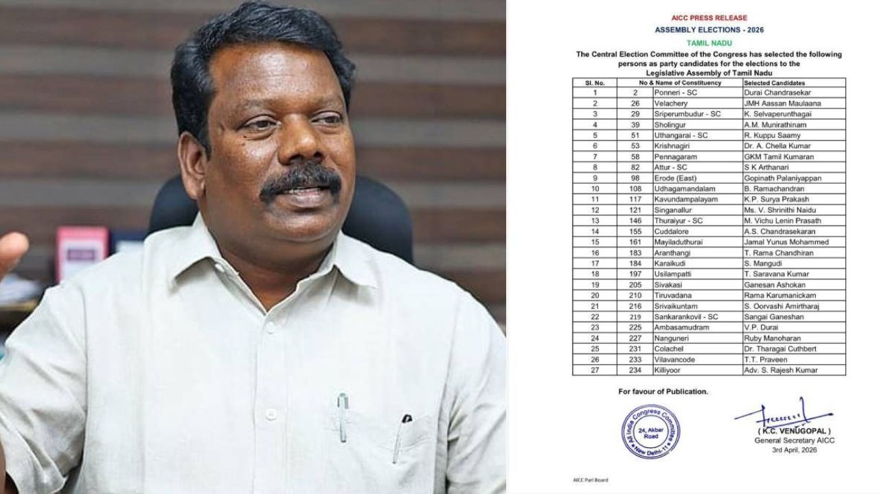 Tamilnadu Election 2026: कांग्रेस ने चला अपना पहला दांव, 27 उम्मीदवारों की पहली सूची जारी, श्रीपेरंबदूर से सेल्वापेरुन्थागई को मिला टिकट