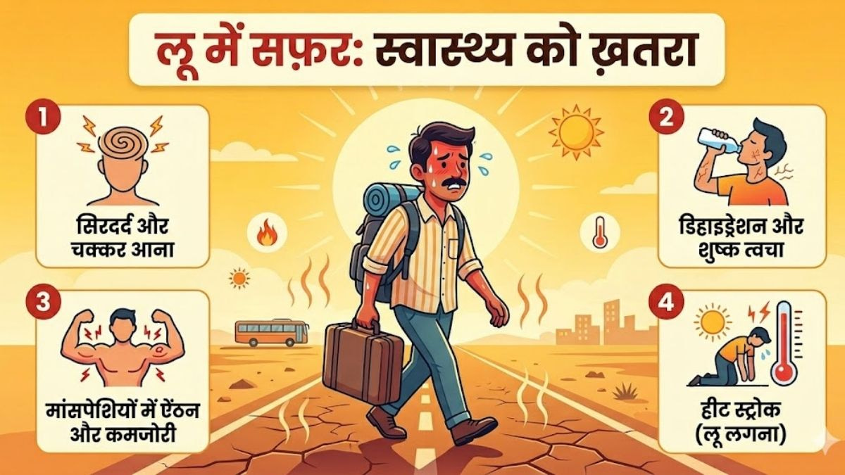 तपती गर्मी में सफर करने जा रहे हैं? लू लगने, डिहाइड्रेशन और थकान से बचने के आसान टिप्स – पानी, सनस्क्रीन, हल्के कपड़े, सही समय और इमरजेंसी प्लान, बच्चों और बुजुर्गों के लिए खास सावधानियां