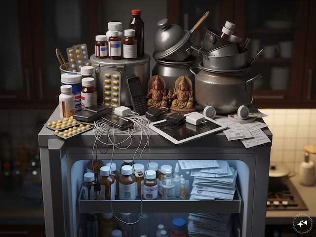 बहुत से घरों में फ्रिज के ऊपर दवाइयों का डब्बा, मेडिकल किट या तरह तरह की गोलियों की पट्टियां रख दी जाती हैं। लोग सोचते हैं कि यह सुविधाजनक जगह है और जरूरत पड़ने पर आसानी से मिल जाएगी। लेकिन वास्तु शास्त्र इस आदत को बिल्कुल सही नहीं मानता। वास्तु के अनुसार दवाइयां रोग और पीड़ा की प्रतीक होती हैं। इन्हें फ्रिज के ऊपर रखने से घर में बीमारी और स्वास्थ्य संबंधी समस्याओं का वास बढ़ सकता है। घर के सदस्यों का स्वास्थ्य बिगड़ने की आशंका रहती है। दवाइयों को हमेशा एक बंद दराज या अलमारी में रखना चाहिए ताकि उनकी नकारात्मक ऊर्जा घर के वातावरण को प्रभावित न करे।